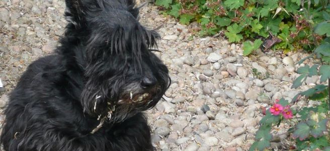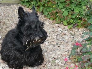 Well after 4 nights camping (in a motorhome of course), Scottie coats are looking bedraggled. Mum “promised” us a grooming. Fortunately for us, she’s left the grooming bag in Doris (our motorhome), which has now gone in for her MOT and service . . . . and won’t be back till next week. Woof Woof