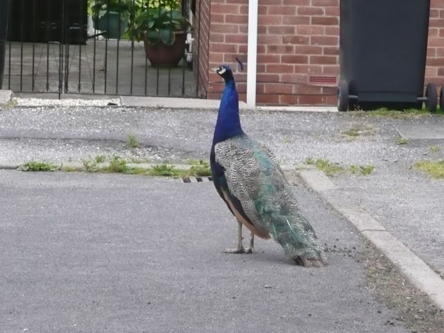 He strutted up and down our little road, probably looking for food. Mum wanted to feed him, but Dad thought that being woken at 06:30 each day with a honking Peacock wouldn’t keep our neighbours happy.
