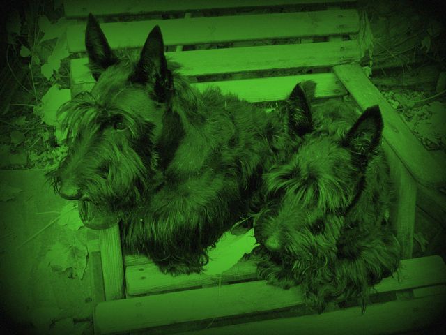 Fin’s Foto Fun May 31, 2012May 4, 2012 ~ Sparhawk Scotties Night! Night! This is what we look like in a night vision! Share this: Click to share on Facebook (Opens in new window) Facebook Click to share on X (Opens in new window) X Click to email a link to a friend (Opens in new window) Email Click to share on Pinterest (Opens in new window) Pinterest Like Loading... Related Published by Sparhawk Scotties View all posts by Sparhawk Scotties