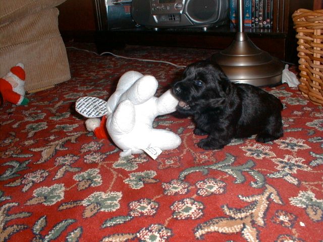 Still keeping with the last week’s long ago flashback, this is one of me, brawling with what has become Finlay’s “Baby”. Even now I sometimes come along sneakily and pinch “Baby” from under Fin’s nose, and give him a quick bite or two …….