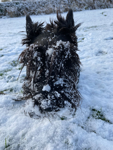 I always wondered, especially with Tayler, what exactly is between a scottie’s ears. Well, I now have proof, well proof of what is between Tayler’s ears ……..’Snow’