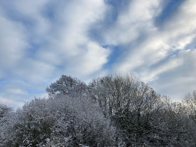 This is my ‘photo of the day’ …… we had a lovely walk around some of our village footpaths. Fabi legs got entangled with the ‘snowballs’ and we had to stop three times to get rid of them, but a lovely quiet and peaceful walk.