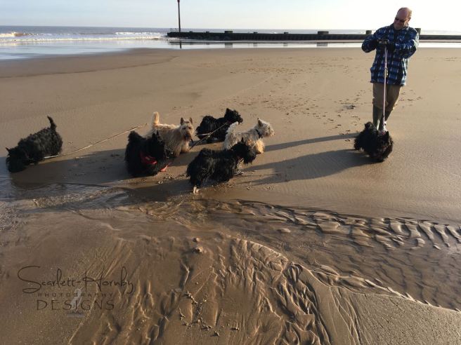 The Magnificent 7 hit the beach at Mablethorpe together with their ‘pet human’ .