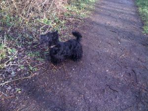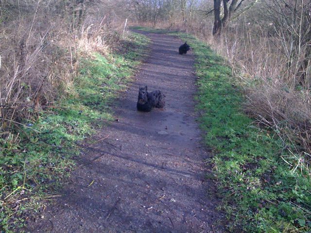 If we were heading into the wind, then twigs, leafs and other stuff seemed to head towards us with gay abandon! Not sure which way we preferred the wind to blow. Oh Yes. We do. We’d like the wind to calm down, be sensible and do nice things like just ruffle our coats a little. Oh and not to frighten Her when a tree crashes to the ground just feet from the path we were on.