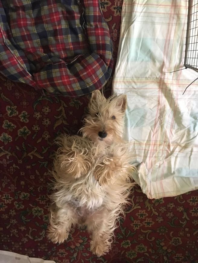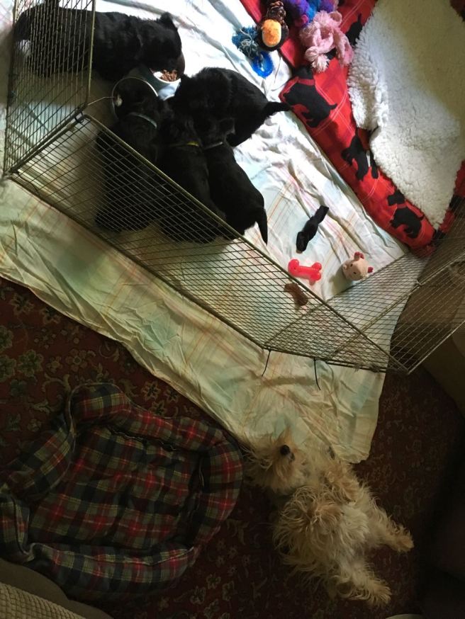 Skimming through the Photo’s library, we came across this photo, which made us smile – There’s Alba on her back trying to attract the attention of the puppies who are not interested at all ….. well of course they wouldn’t be, there’s food to be eaten !!