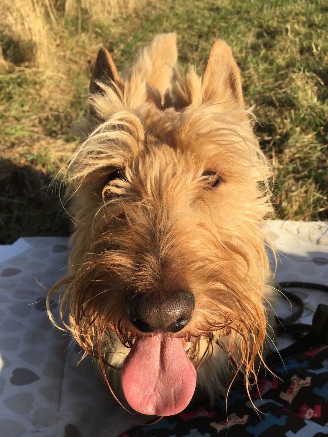 Bobby, 14th January 2012. He was always so happy when we got the ‘poo bag carrier’ out. It meant we were all going on a longer than usual walk. Happy memories. We miss you dreadfully Bobba.